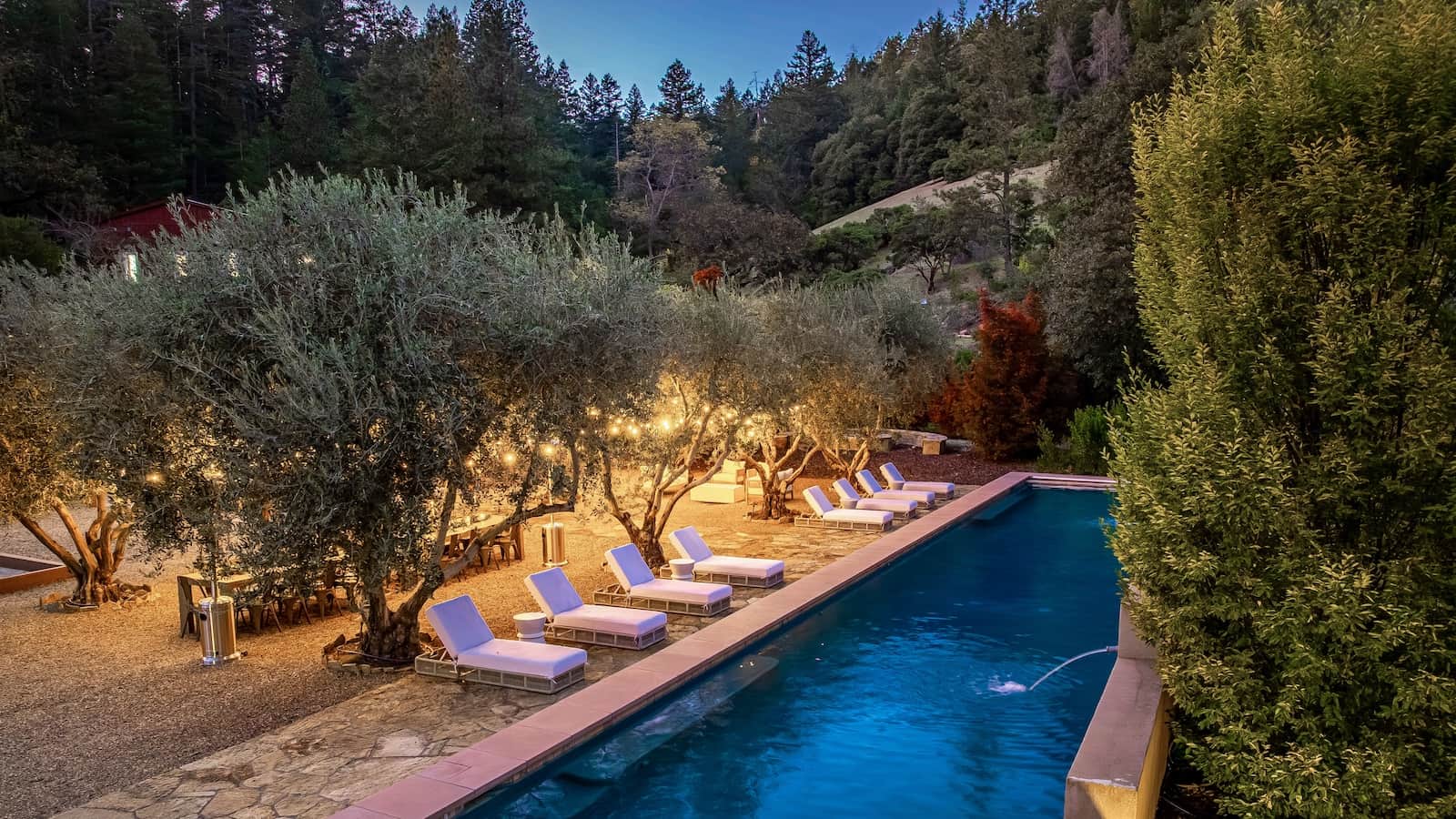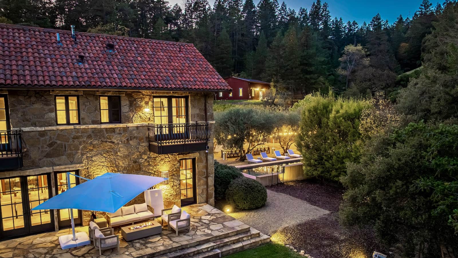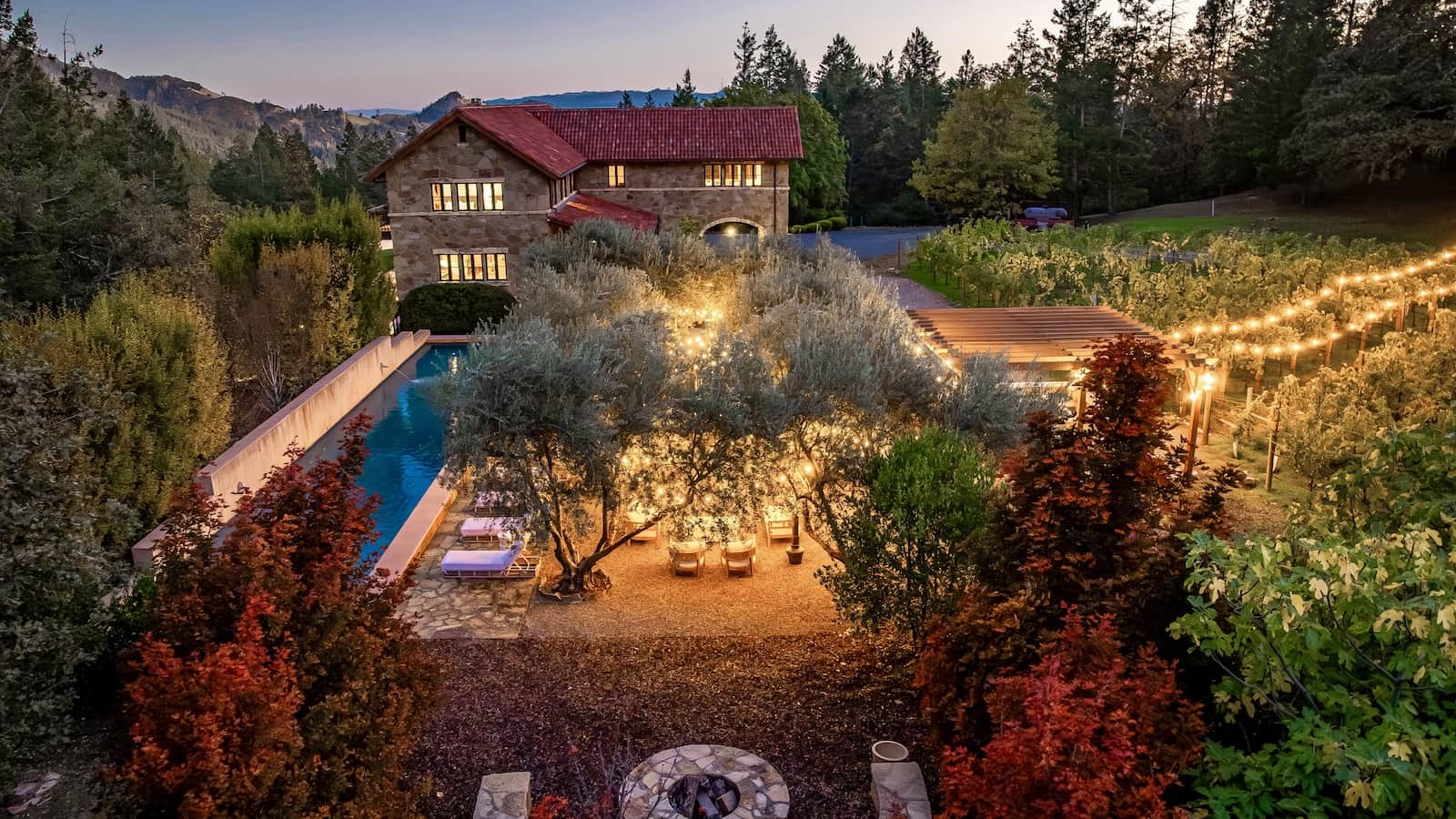 Escape to our private 38-acre Calistoga estate with vineyard views, pool, fire pit, and luxury interiors. Sleeps up to 16. Enjoy Stunning Mountain Views, Chef’s kitchen, Pool, Guest House, Game room, Open Concept Living/Dining, Outdoor dining, Outdoor Kitchen, Pond, Bocce ball, Fire Pits, Fruit trees, and more. Just minutes from town, yet completely serene & private. Perfect for group getaways, family gatherings, elopements, and wine country retreats! A luxurious, authentic Calistoga wine country experience!